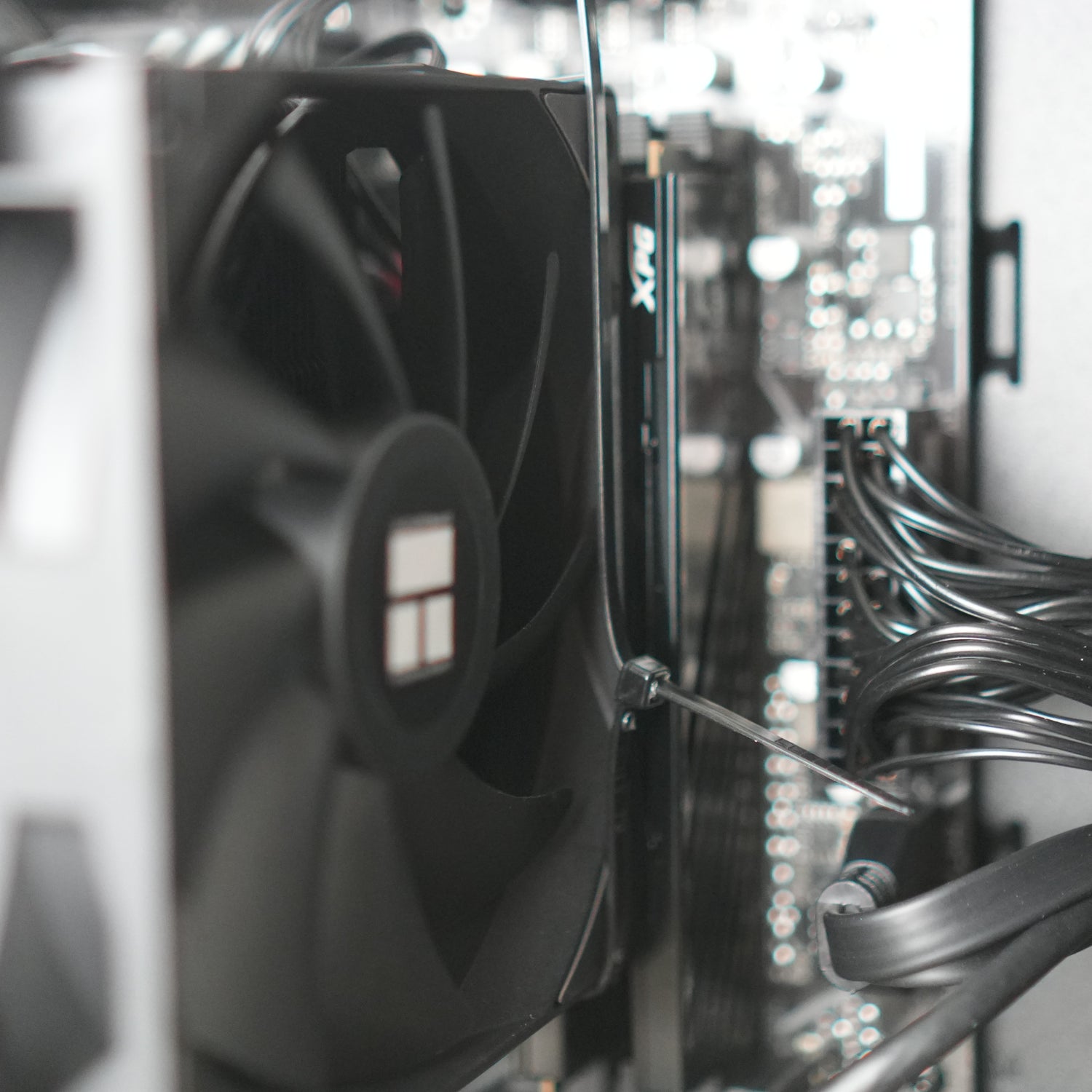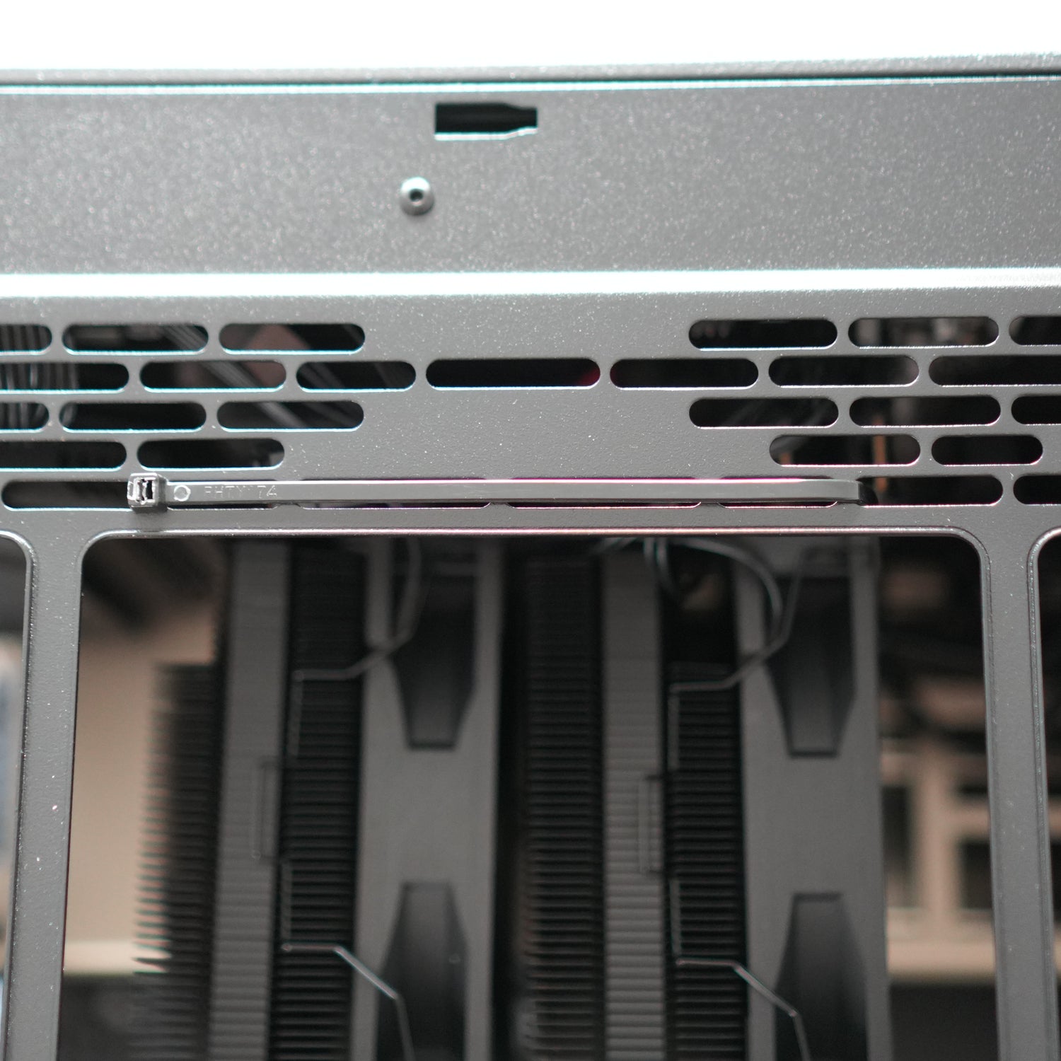 If your PC has a tower air cooler (i.e. not a liquid cooler), there will be a plastic cable tie to support the CPU cooler in transit. This needs to be cut prior to use. You can cut it at any point of the loop but you have to be very careful not to cut any of the cables in the case. The loop will be secured to the top of the case on the fan rails