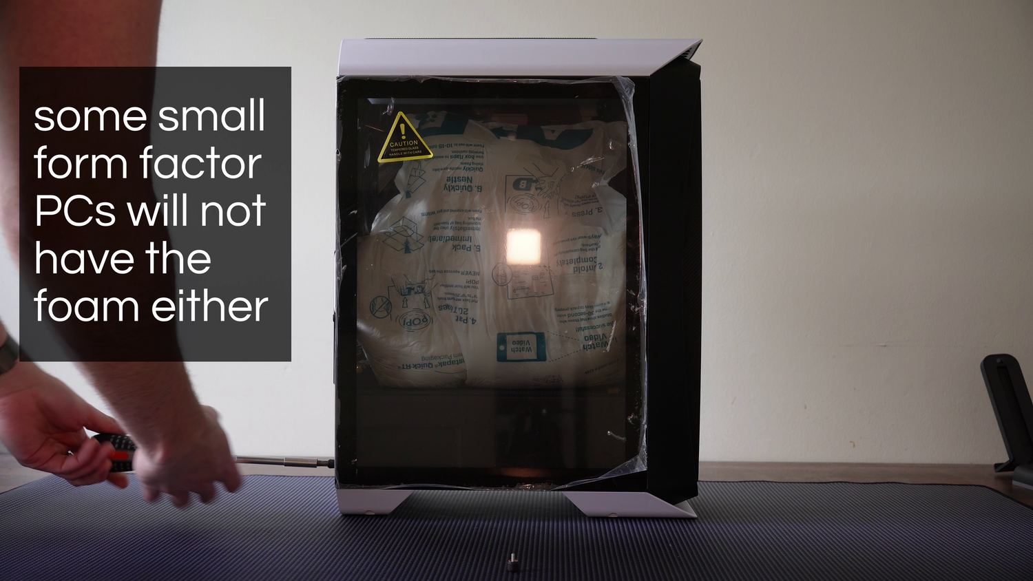 Most PCs will ship with expanding instapak foam to protect the graphics card (small form factor builds may not have this).