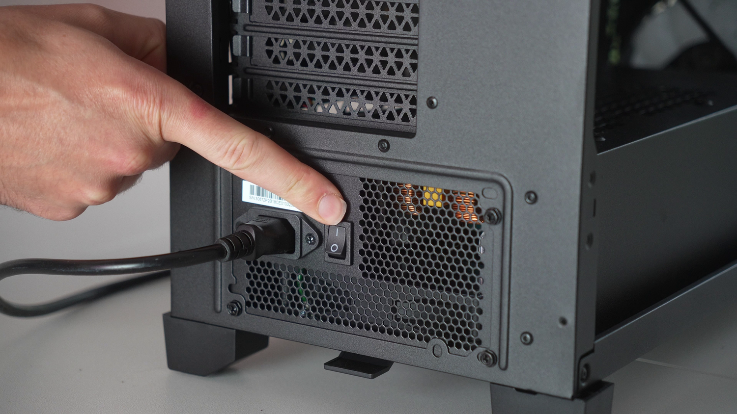 Flick the power supply switch to the "I" position. If there is no switch, that's because the case design means the unit is located elsewhere in the case. We will have switched it on for you so you can simply plug in and not worry about this