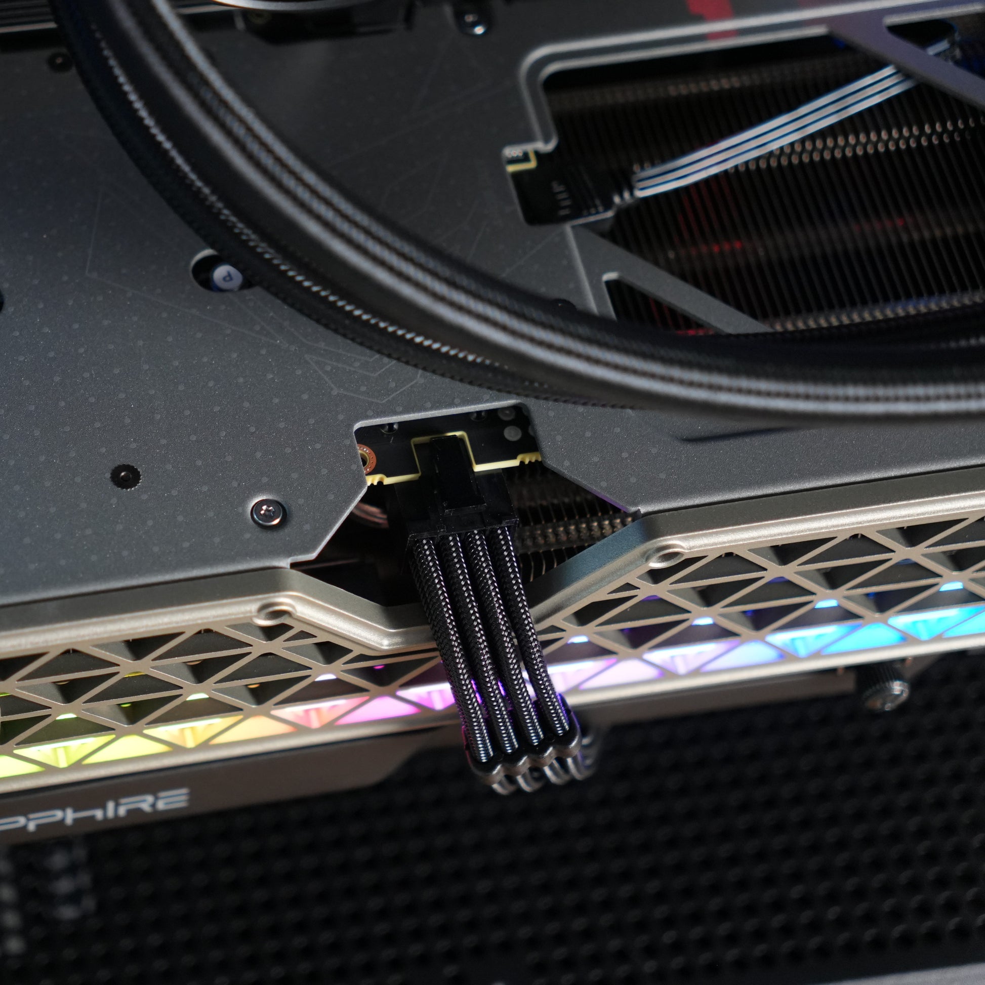 - The photos show black sleeved cable extensions, which are an optional upgrade.