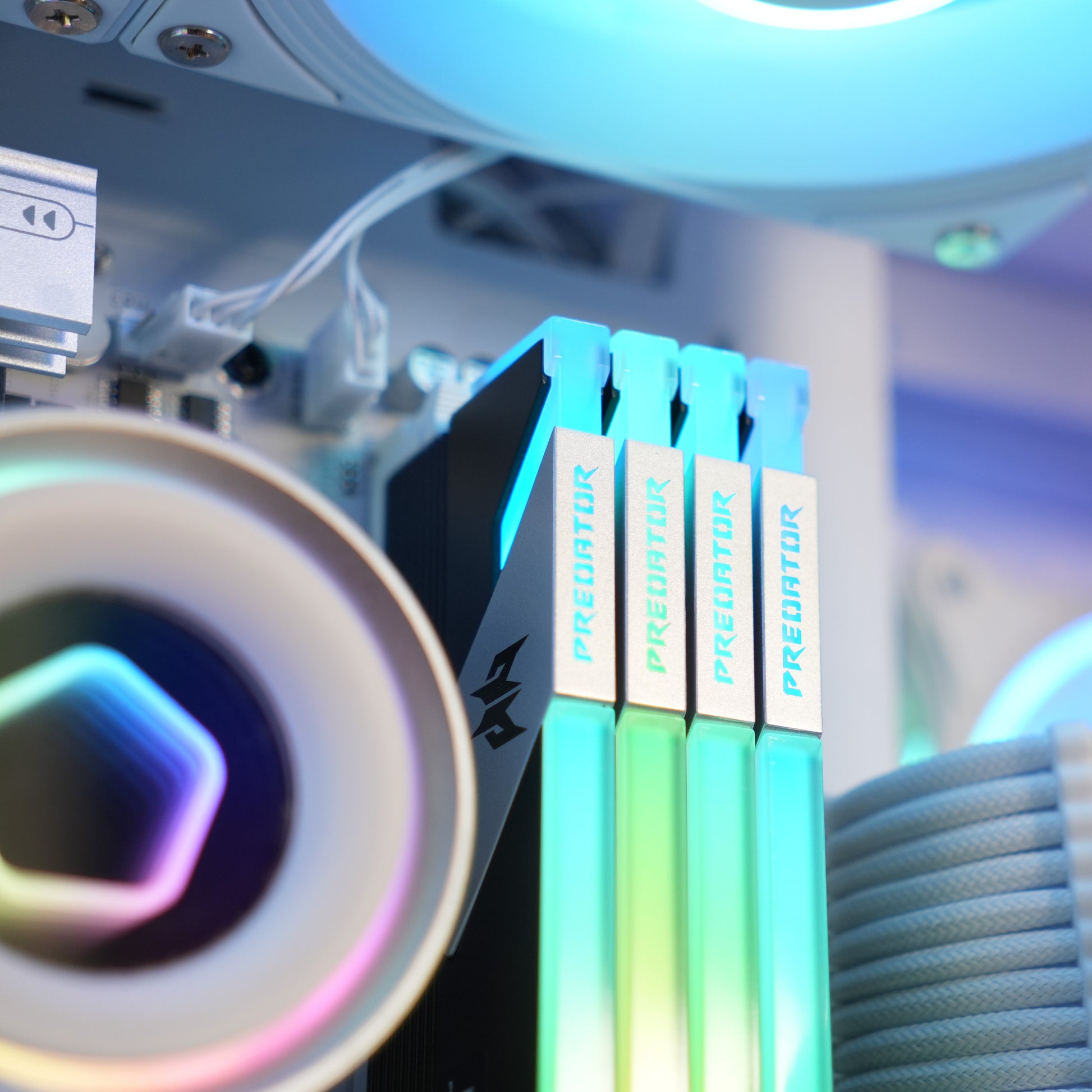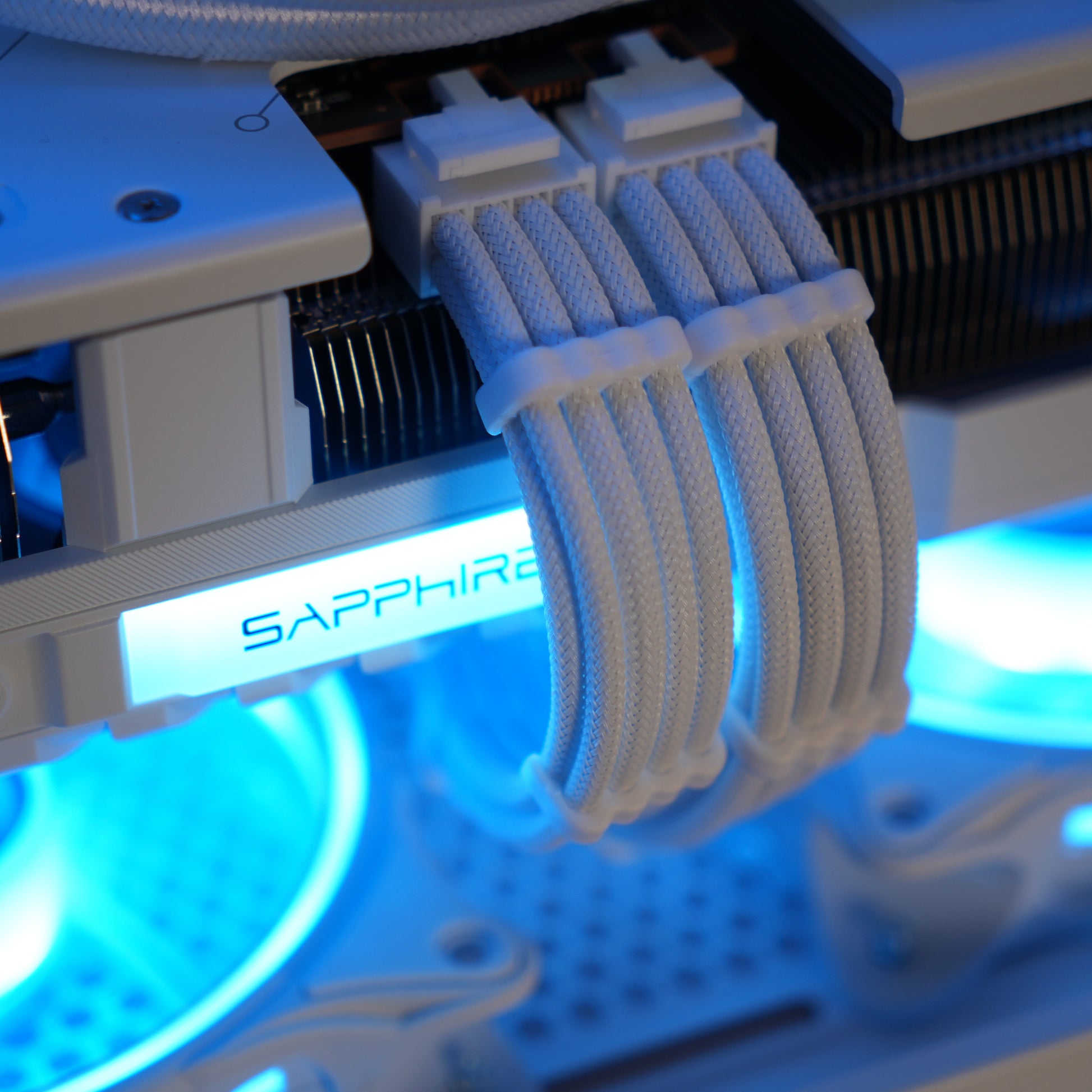- White braided extensions for GPU, and motherboard to match the panoramic white theme